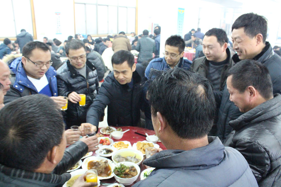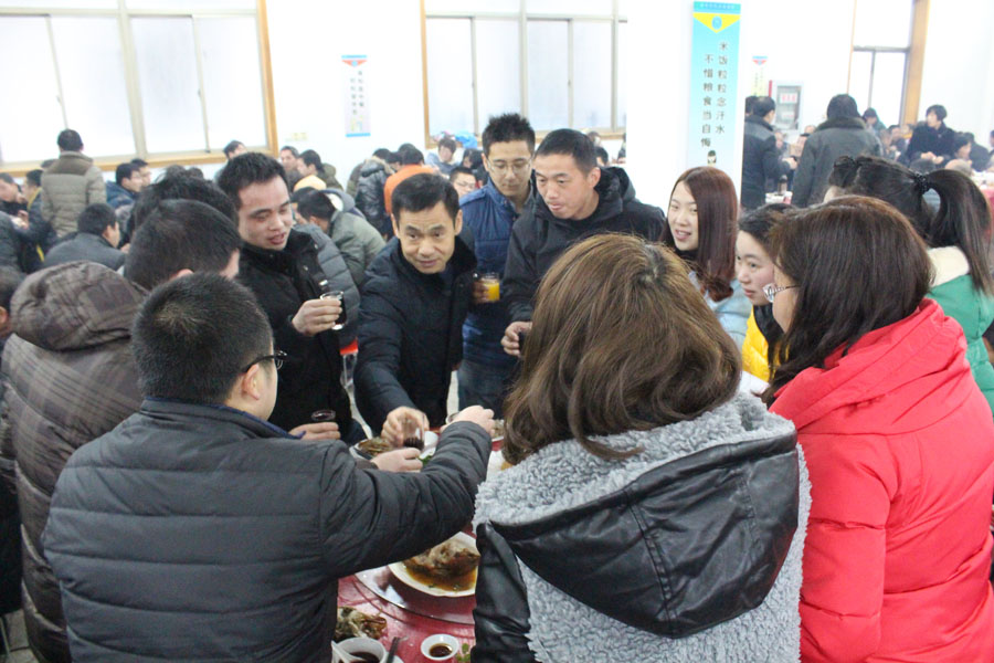 2月6日,農(nóng)歷馬年正月初七中午,公司在食堂舉行一年一度的開(kāi)工酒盛宴。公司總經(jīng)理沈祁峰,以及各位副總出席開(kāi)工宴,來(lái)自各車(chē)間、各科室的200余員工參加。大家暢談過(guò)去一年取得的成績(jī),交流馬年春節(jié)的奇聞趣事,展望新的一年,紛紛表示要更加努力地工作。沈總表示,2014年,雖然面臨諸多困難,但公司確保年銷(xiāo)售9億元,爭(zhēng)取10億元的目標(biāo)不變。 從2月7日起,公司將正常上班。