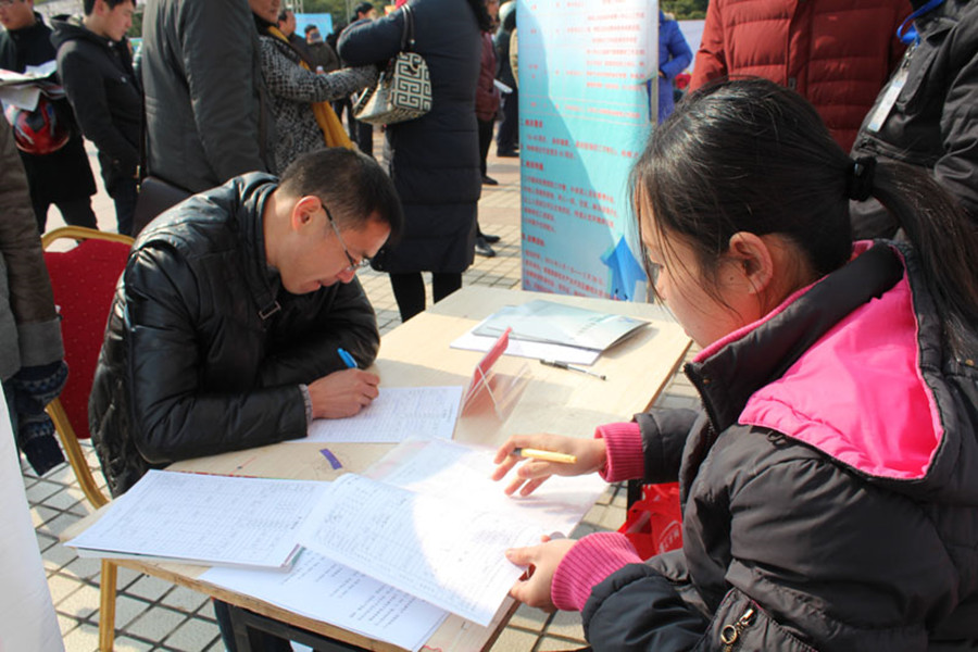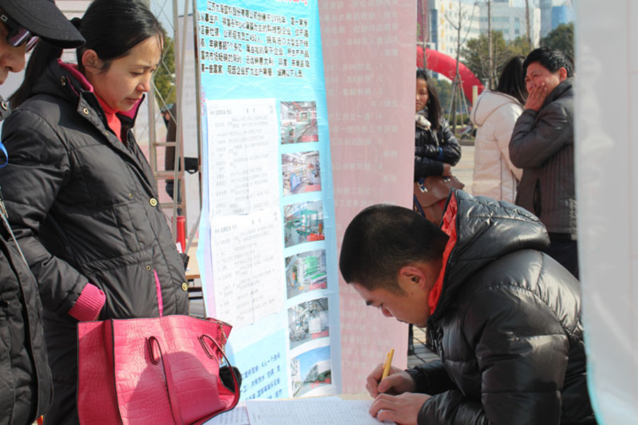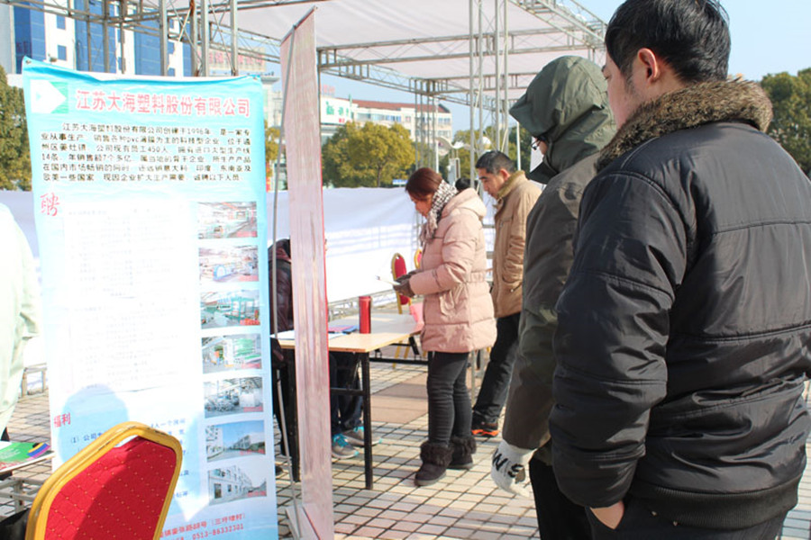 從2月8日起,公司除了在大門外張貼招聘人才廣告外,還陸續(xù)派出招工小組,分赴南通高新區(qū)、南通家紡城、南通人才市場招工。